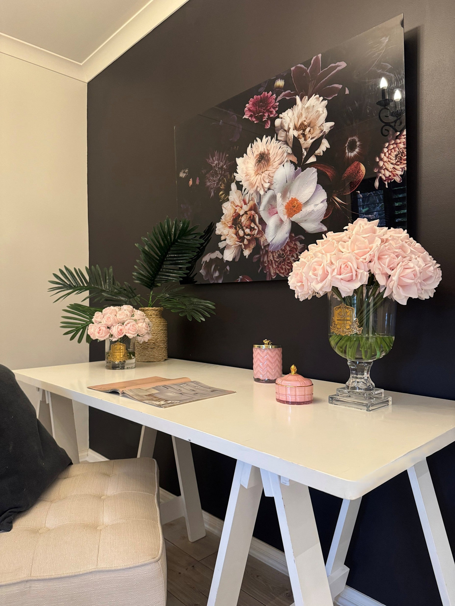 Luxury Versailles French Pink Rose Bouquet Gold Badge