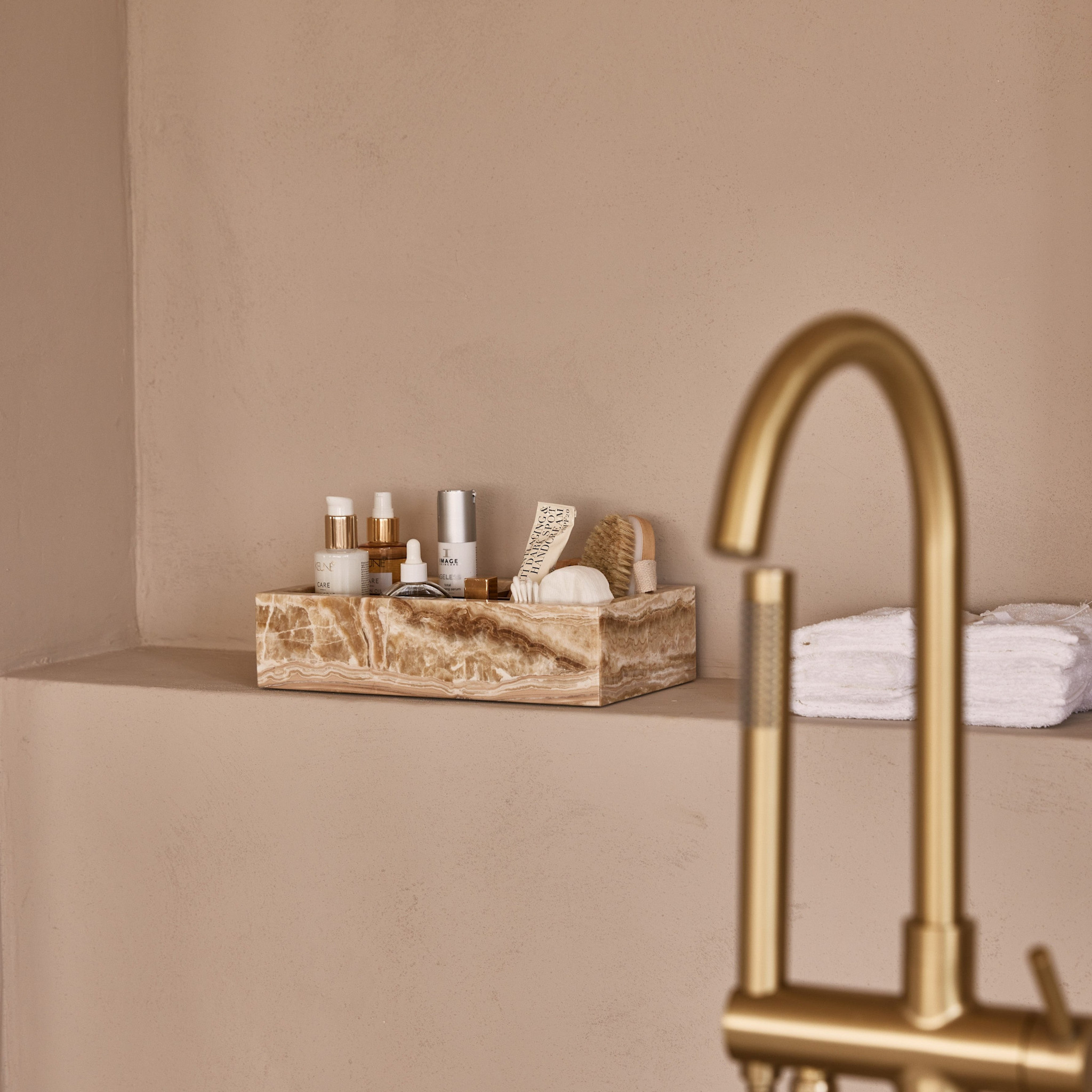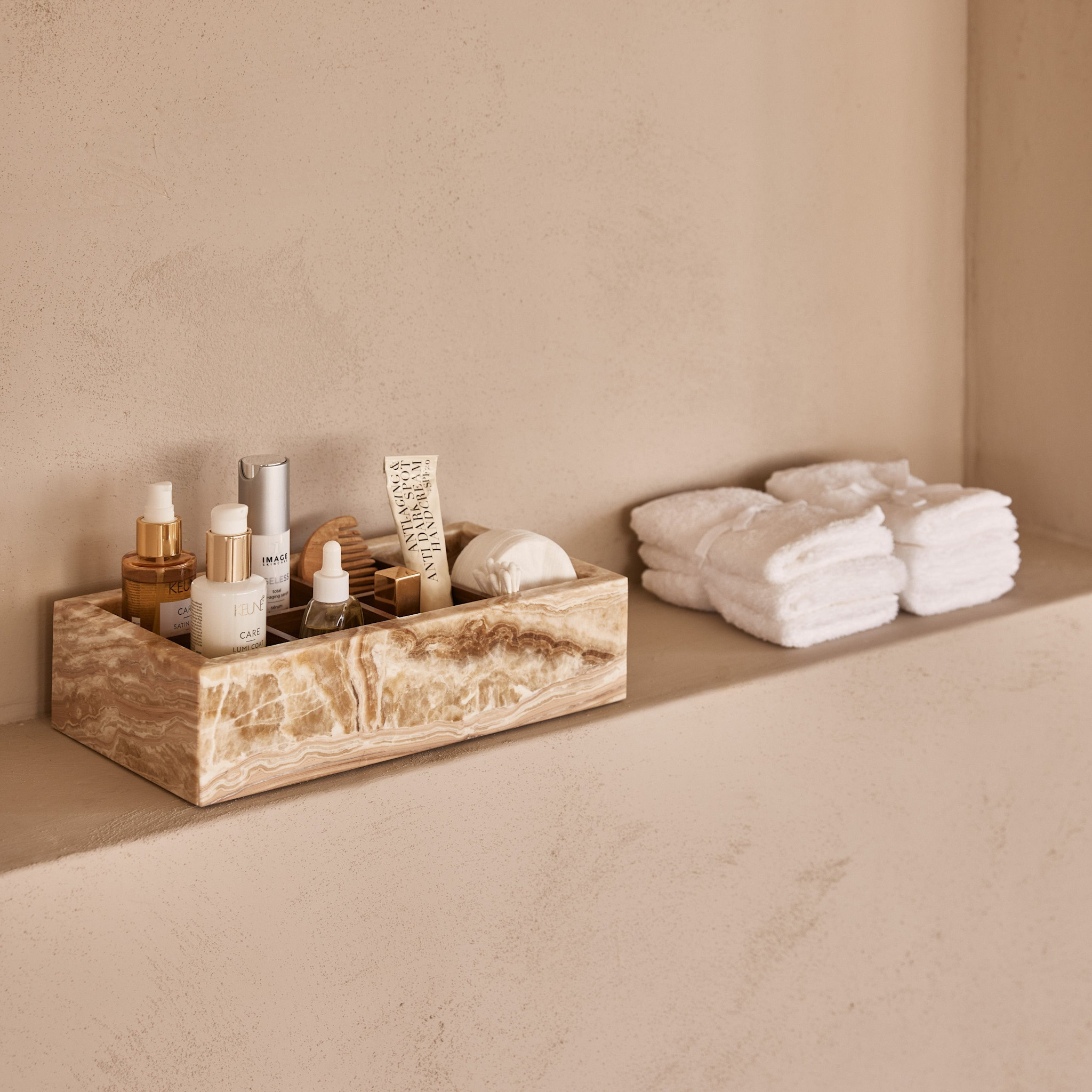 Voeg een vleugje luxe toe aan je interieur met dit ovale, zandkleurige marmeren dienblad. Perfect als decoratief object of voor het stylen van je favoriete items. Gemaakt van uniek Onyx sand marmer.
