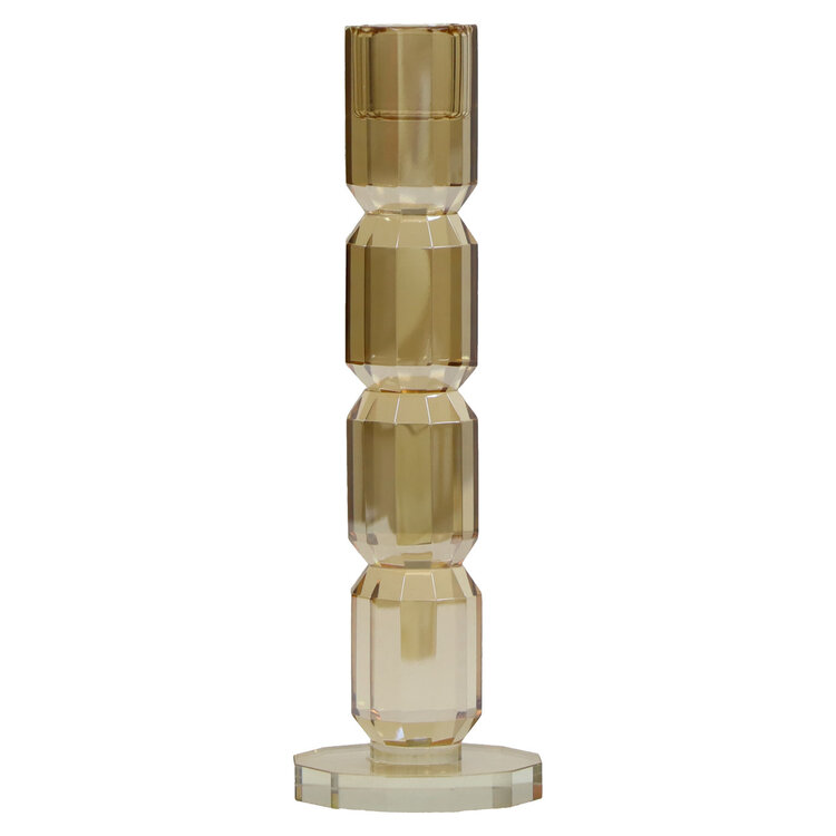 Een elegante kandelaar die warmte en sfeer toevoegt. Ideaal voor een tafelsetting of decoratief arrangement. Het zachte kaarslicht creëert een uitnodigende ambiance.