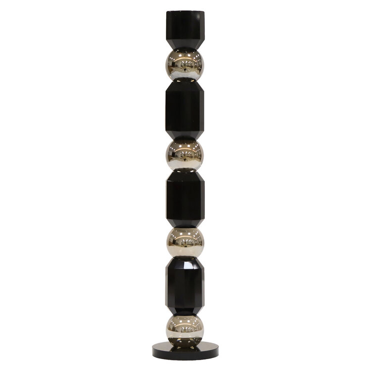 Een elegante kandelaar die warmte en sfeer toevoegt. Ideaal voor een tafelsetting of decoratief arrangement. Het zachte kaarslicht creëert een uitnodigende ambiance.