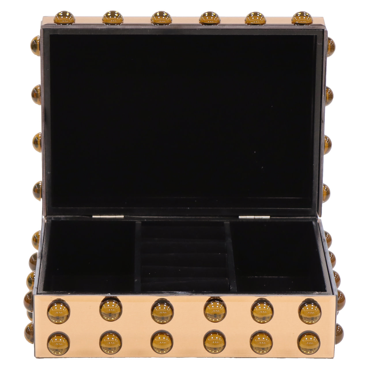 Een elegante opbergdoos die jouw accessoires netjes georganiseerd houdt. Ideaal om te gebruiken op een bureau, dressoir of vakkenkast. Het ontwerp is voorzien van glas en voegt een warm accent toe aan jouw interieur.